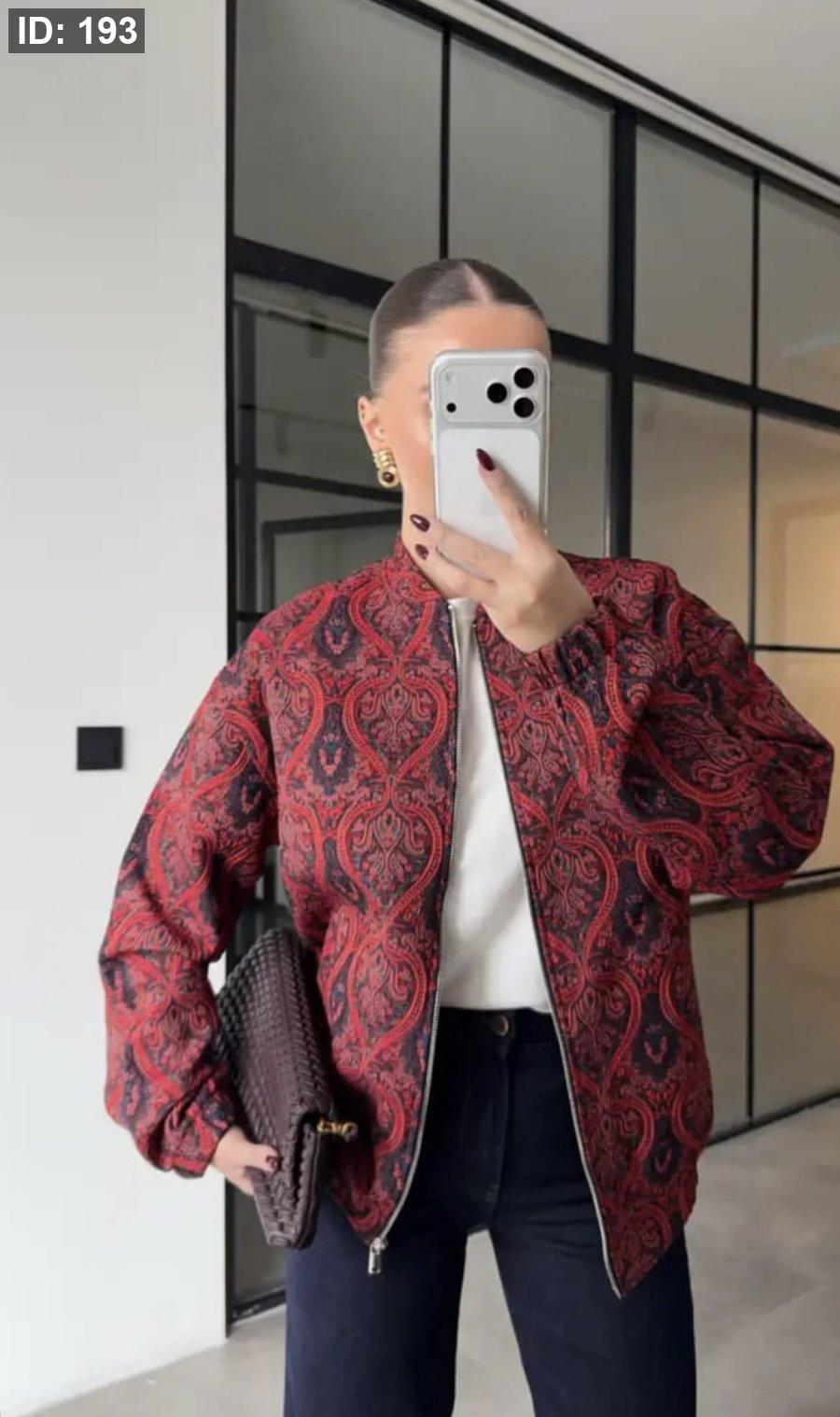 جاكيت مطرّز بألوان جذابة بنقشة تشبه الفسيفساء.