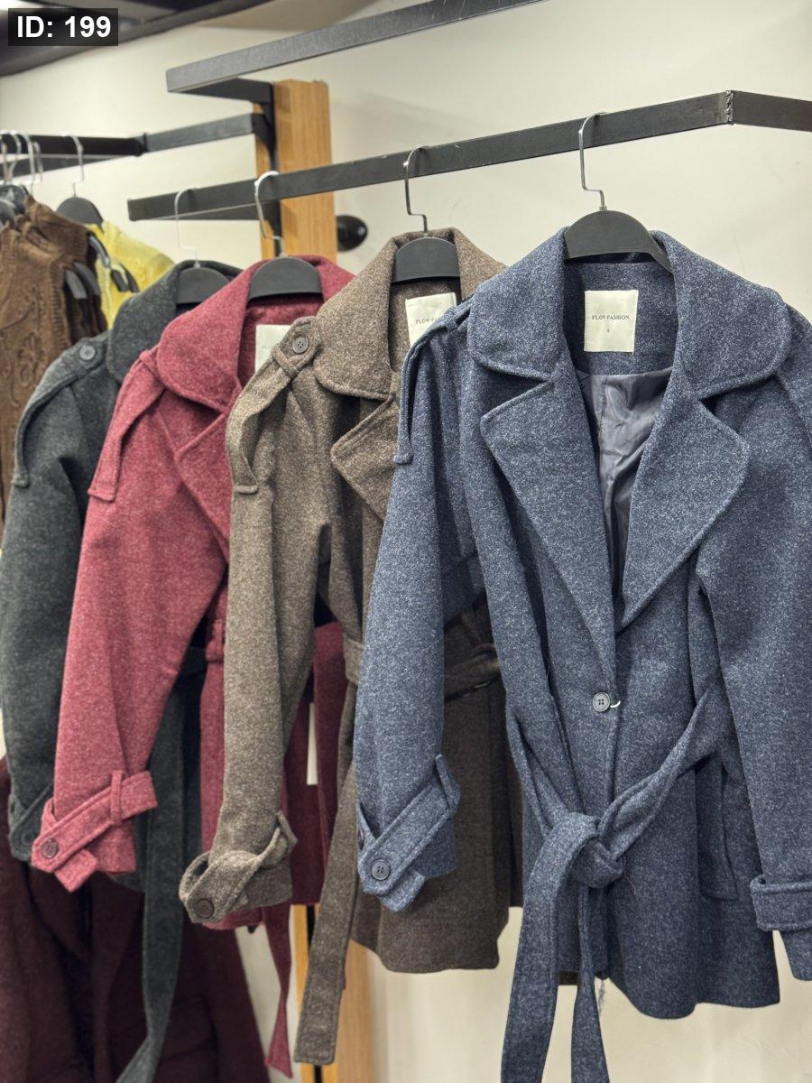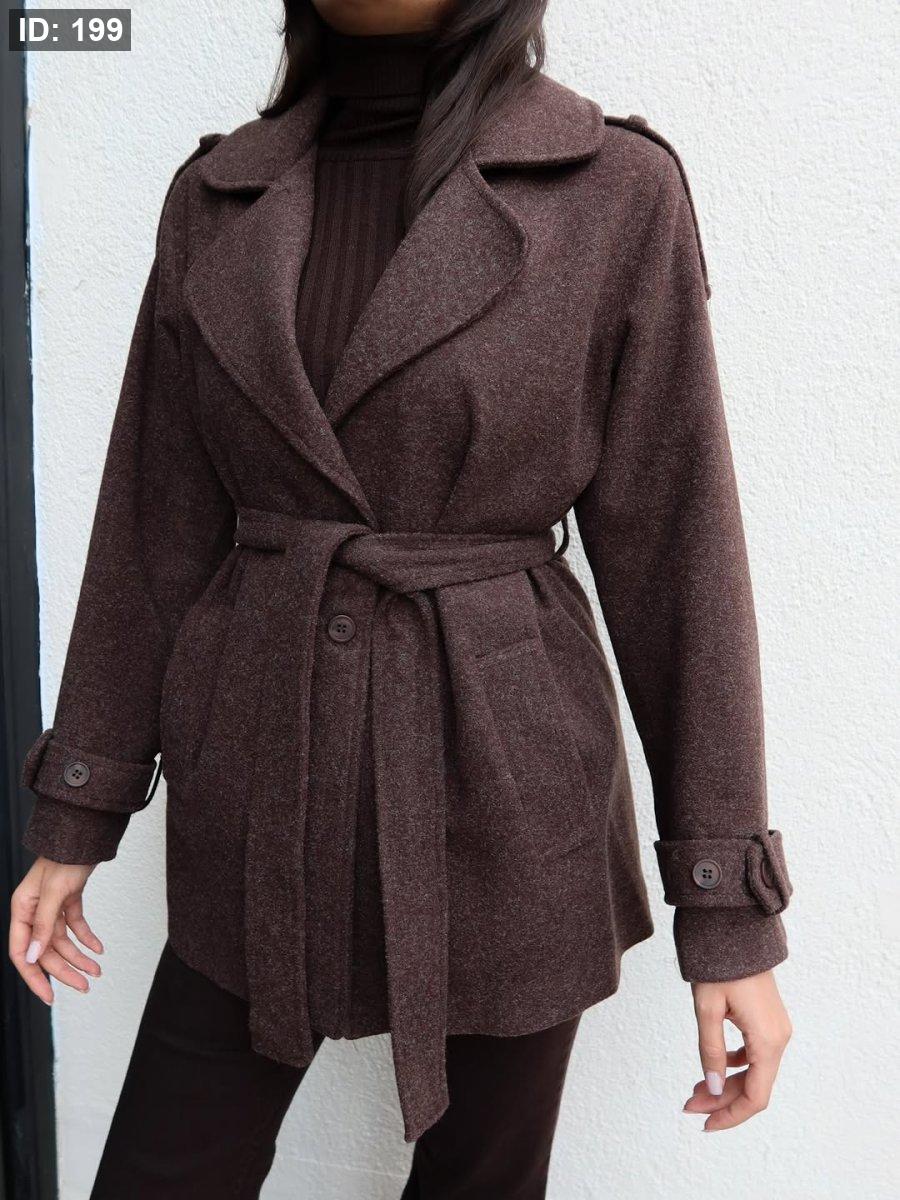 جاكيت تقيل بقبة مطوية عادية مع وزنار يحدد الخصر، دافئ وأنيق للاستخدام اليومي والرسمي
