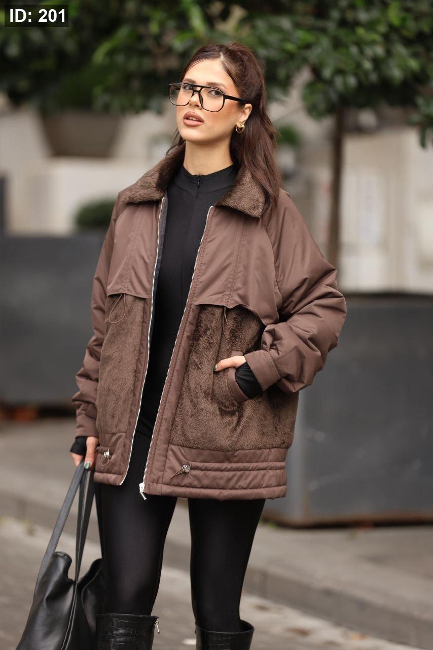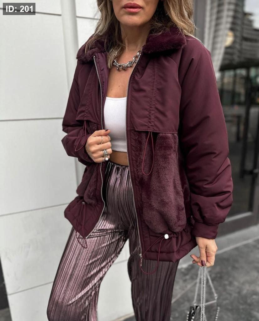 سترة فرو مع ساتان، تقيلة ودافئة، لمسة فاخرة