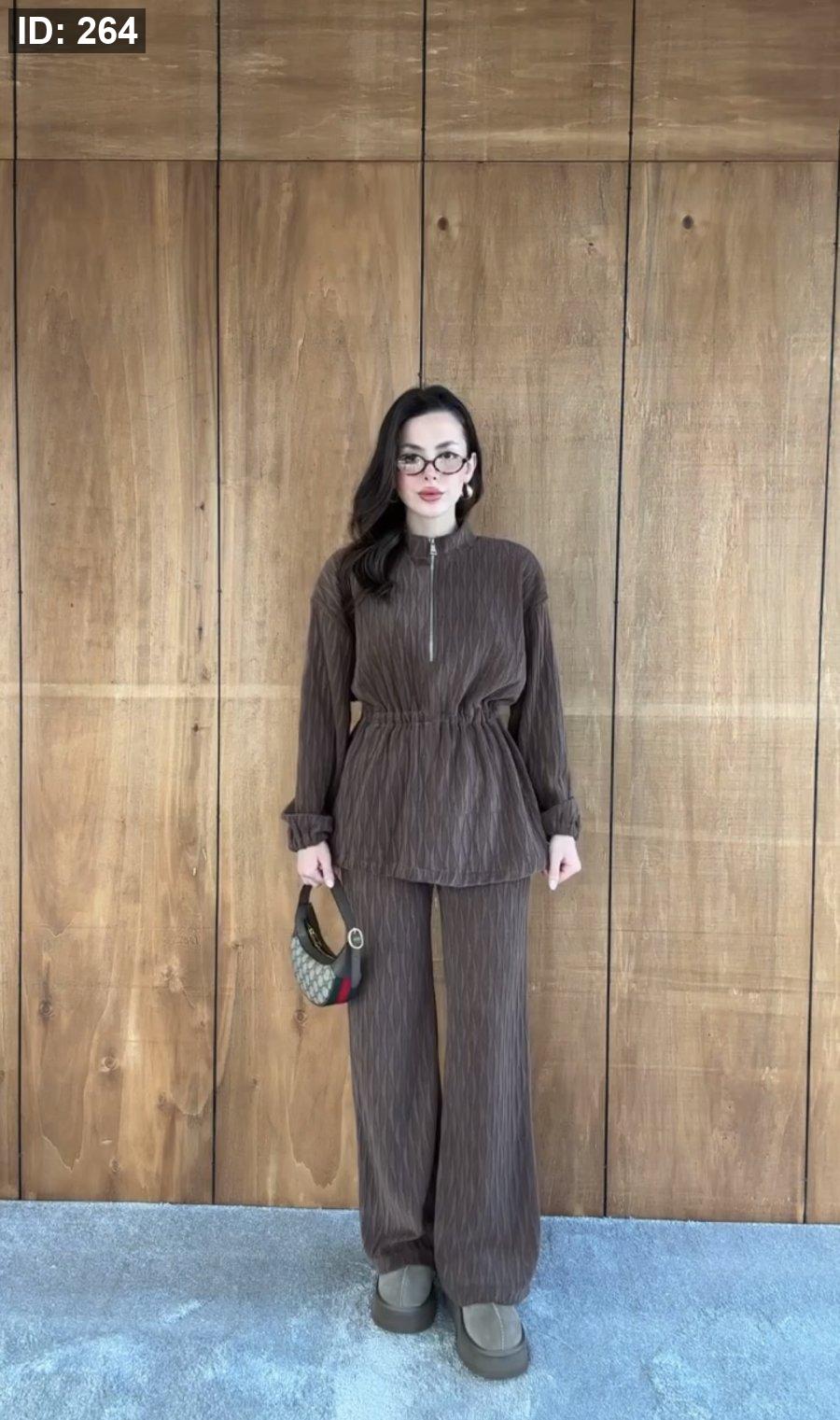 طقم مخملي ناعم بقصة مريحة، سحاب أمامي ولمسة راقية