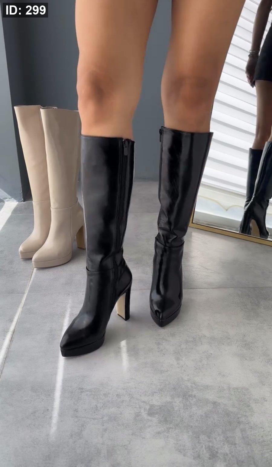 جزمة ركبة بكعب عالي جلد