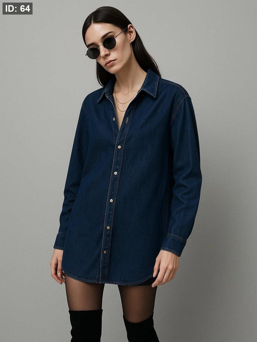 هذا القميص يعتمد على البساطة في التصميم، بدون تطريز أو طبعات، ليبرز خامة الجينز وجودتها، مما يجعله قطعة أساسية يمكن تنسيقها بسهولة مع أي بنطلون أو جاكيت